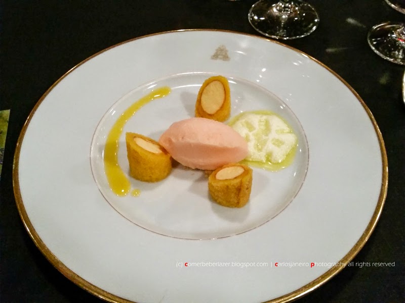 Uma sobremesa citrina que necessitava de algo doce para a equilibrar aos nossos sentidos. Um branco doce que sozinho apresentava uma doçura um pouco excessiva (para alguns) mas que ligou com mestria neste prato cítrico e fresco. Um tipo de vinho a descobrir que bem fresco poderá também funcionar para inicio de refeição.